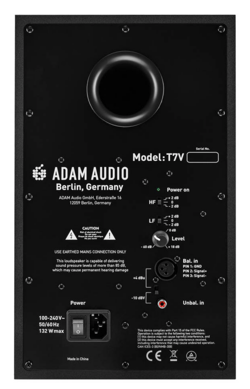Le T7V dispose d'un haut-parleur de grave de 7" qui permet d'étendre les basses jusqu'à 39 Hz, tandis que le diaphragme du haut-parleur U-ART fournit une réponse haute fréquence parfaite et étendue jusqu'à 25 kHz pratiquement sans égal dans cette catégorie de prix. Le tweeter U-ART est monté sur un guide d'ondes de précision avec les mêmes attributs de contrôle de dispersion que le guide d'ondes à propagation à haute fréquence (HPS) utilisé dans les moniteurs de studio ADAM Audio de la série S. La dispersion très uniforme des hautes fréquences du guide d'ondes permet une position d'écoute incroyablement large qui vous libère d'être collé à une position de mixage rigide pendant le travail.