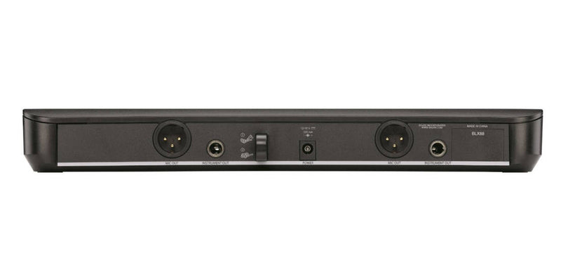 The BLX88 offers simple setup, intuitive controls and a diversity of microprocessor-controlled internal antennas. One-touch QuickScan frequency selection quickly locates the best open frequency in the event of interference. For use with BLX wireless systems.